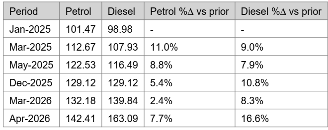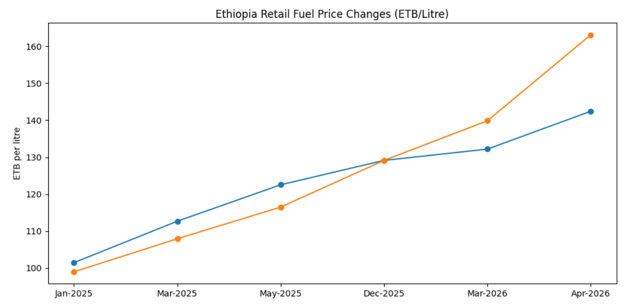 Ethiopia’s fuel story is becoming less about phased domestic price liberalisation and more about external vulnerability. Recent pump-price adjustments have pushed petrol and diesel prices materially higher than levels captured in the earlier “fuel staircase” analysis, reinforcing how domestic pricing now transmits international shocks faster into the local economy. What had been a controlled subsidy-withdrawal story is increasingly evolving into a supply-security and imported inflation story.
